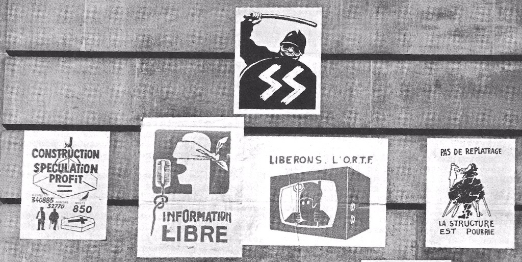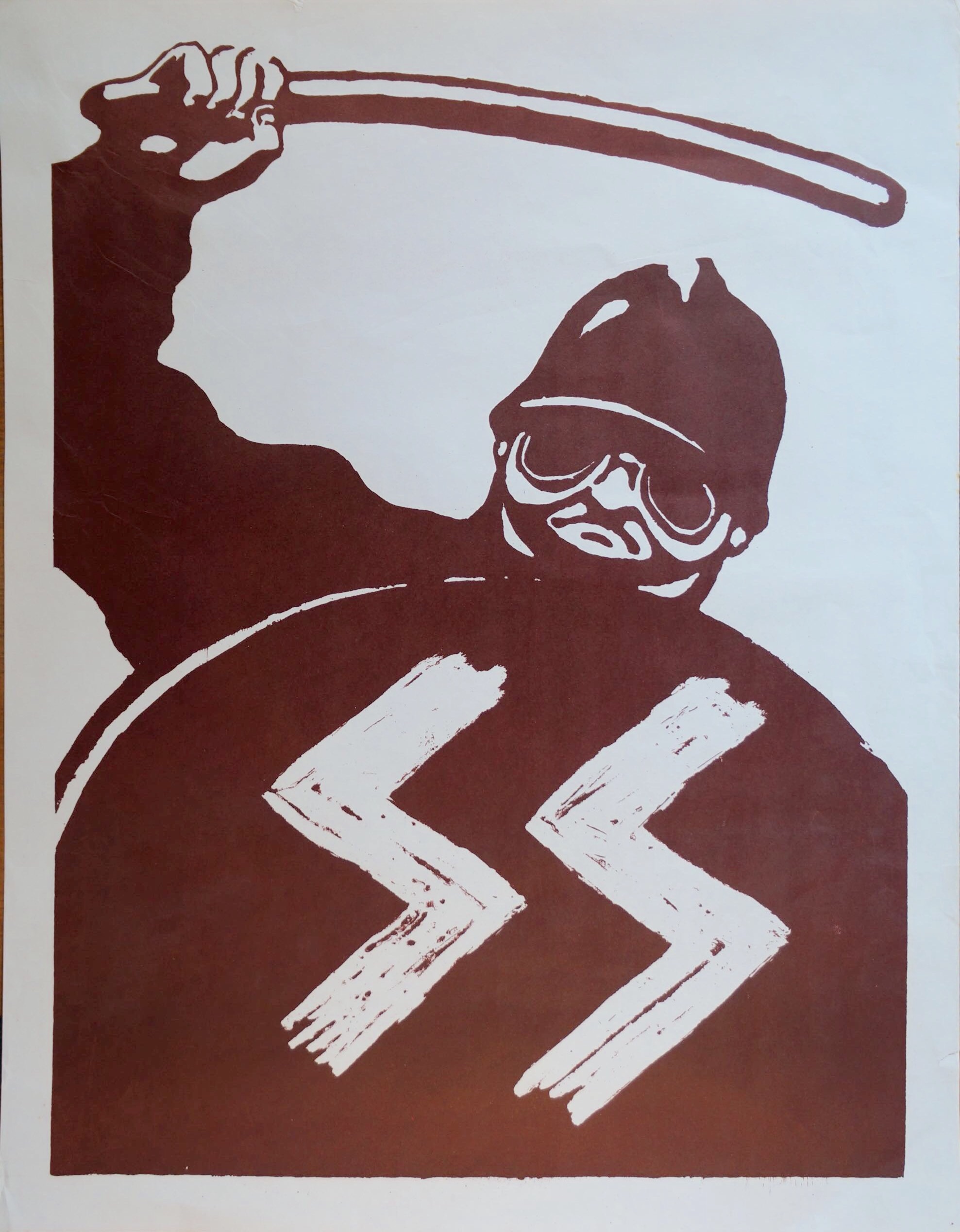 This poster is one of the most iconic from May 1968. The first version produced only had the image of the CRS policeman (drawn by cartoonist Jacques Carelman) on it. This is the later version with the “SS” added to the shield. This refers to the student chant: “CRS SS!”.