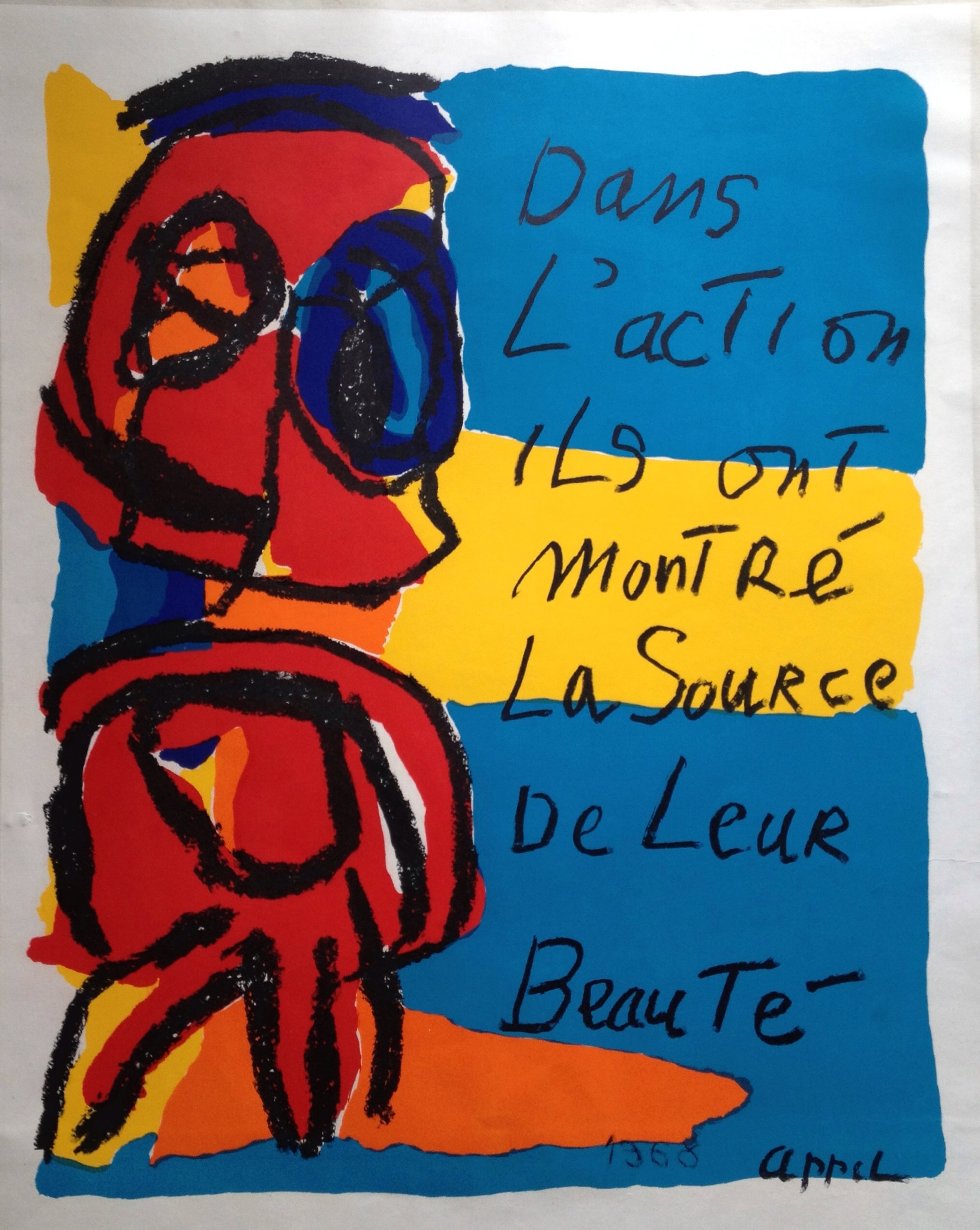 Along with the lithographs documented in this blog by Asger Jorn and Karel Appel, this is another of the artist-produced posters produced to be sold to fund the student movement.