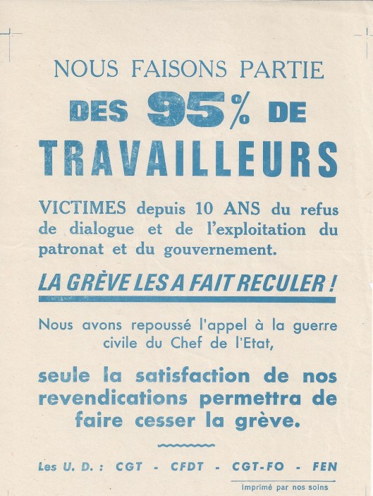 Tract – “We belong to the 95% of the Workers” (late May 1968 – CGT, CFDT, CGT-FO, FEN)