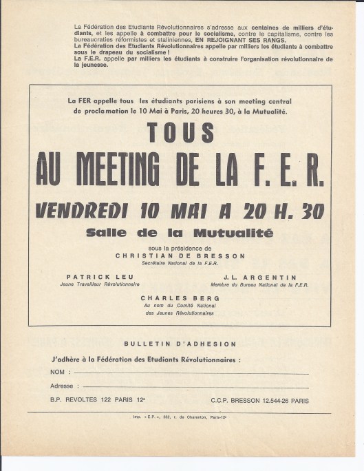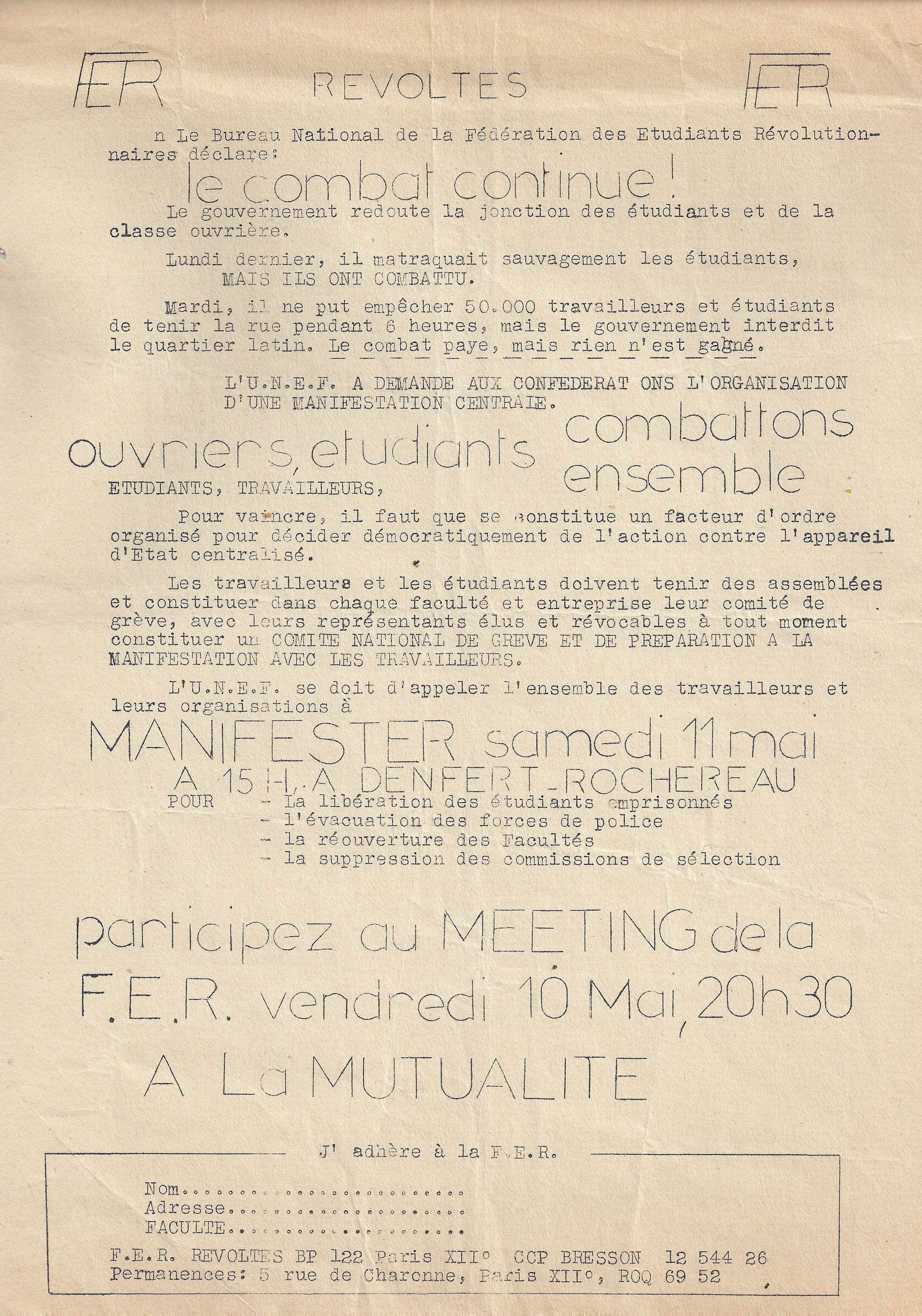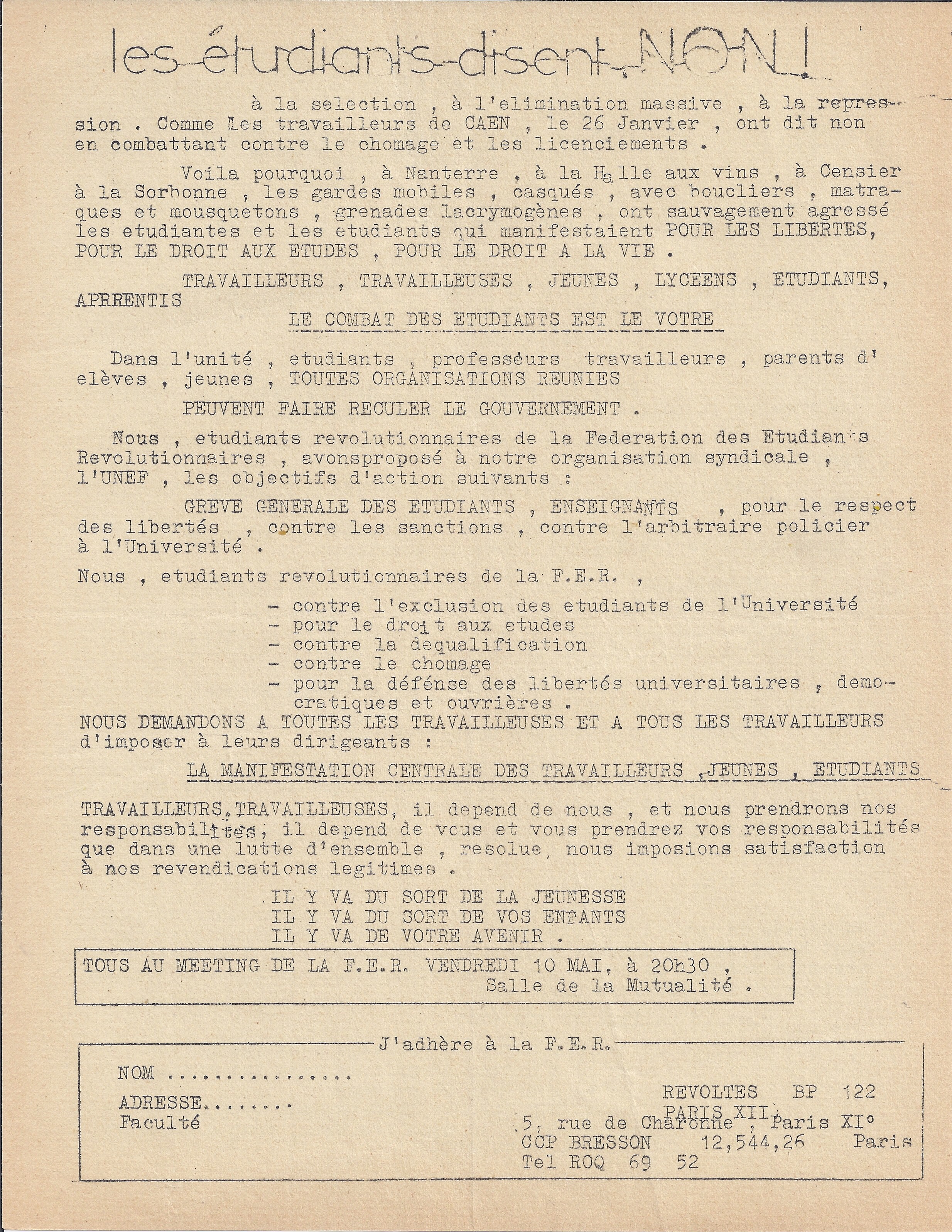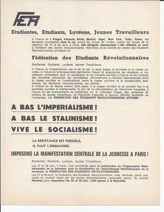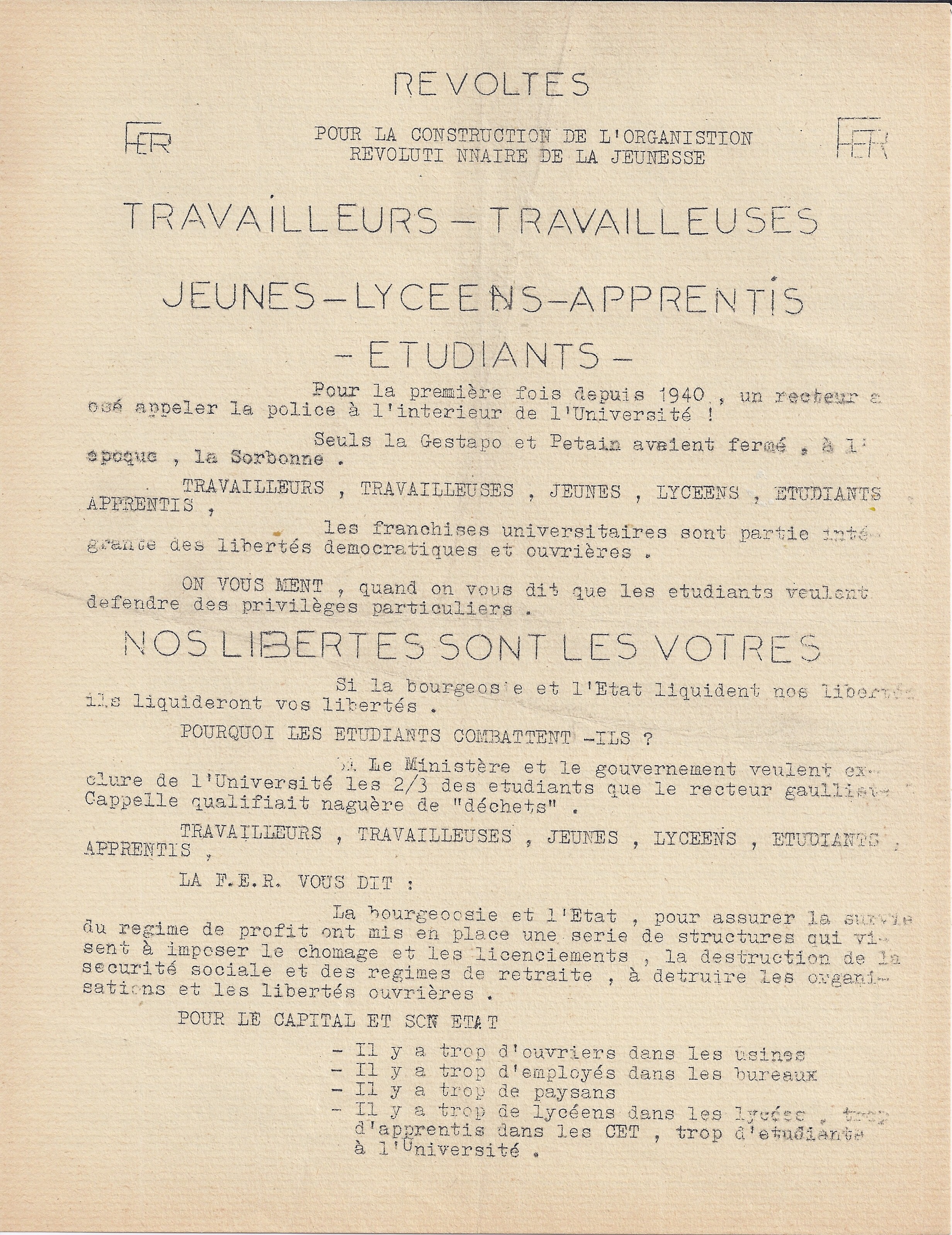 Tract – “For the Creation of the Revolutionary Youth Organisation” (6 May 1968 – FER)