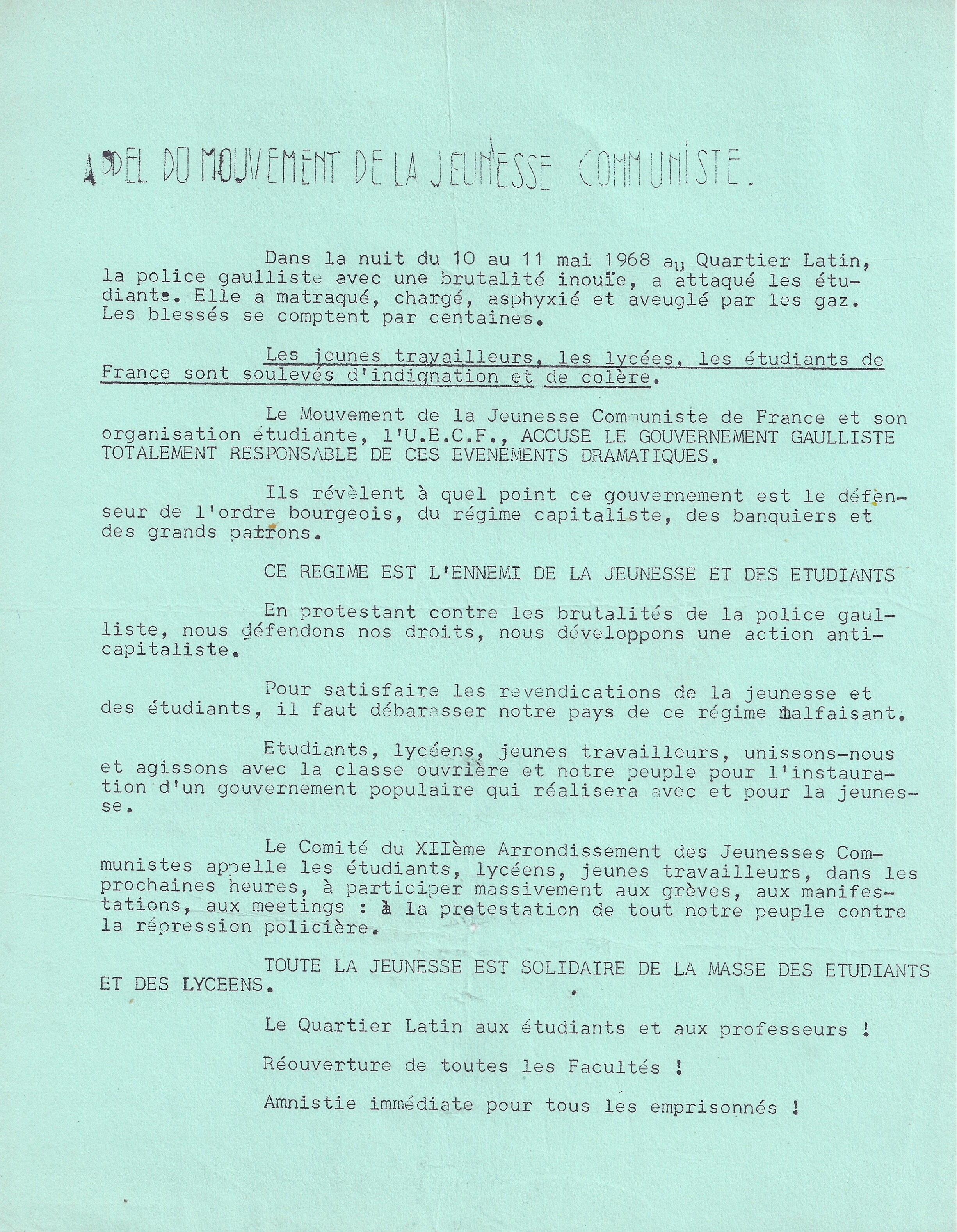 The Communist Youth Committee of the XIIth Arrondissement calls on students, pupils, and young workers to