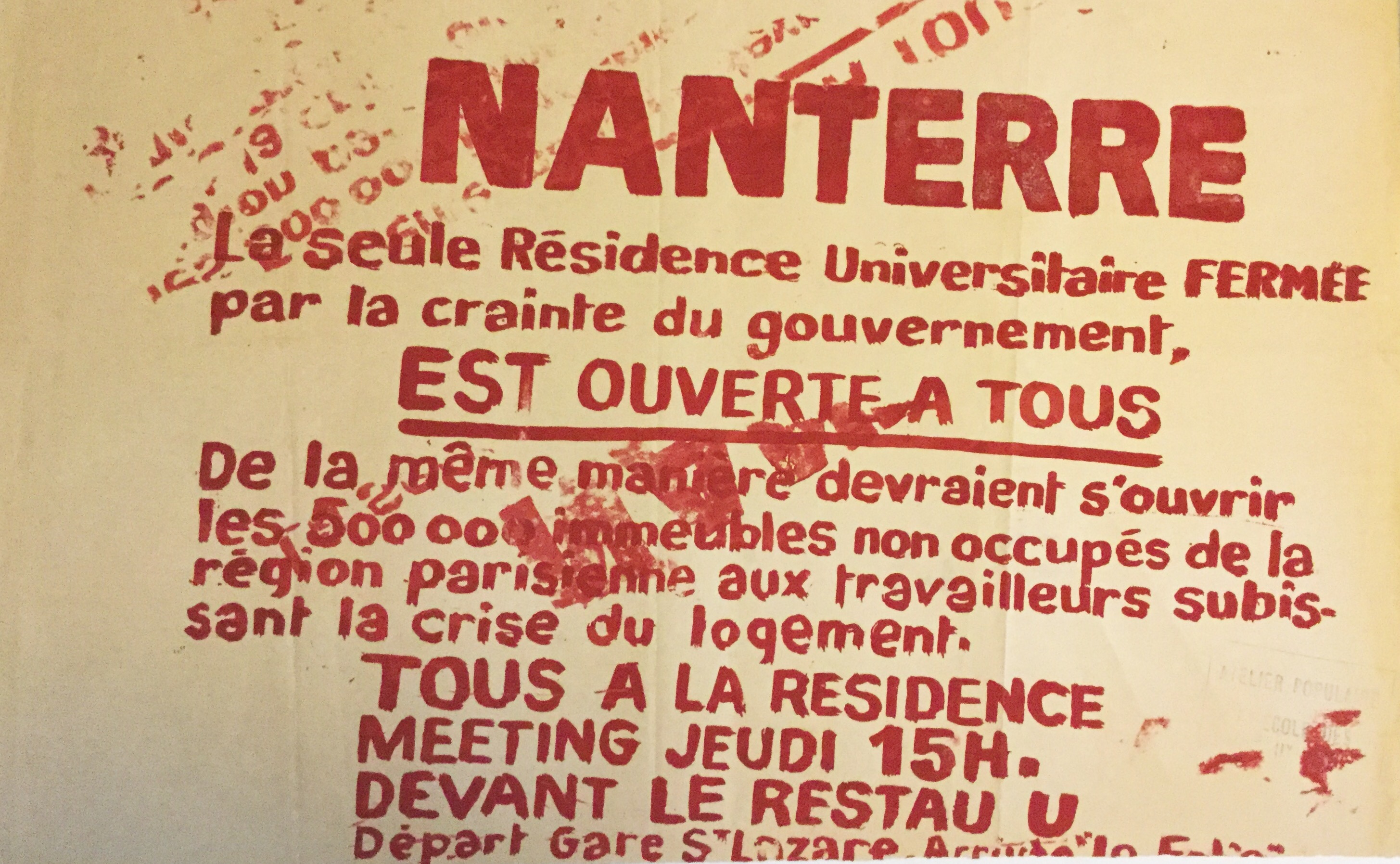 The Communist teachers of the Faculty of NANTERRE vigorously protest against the police violation of academic freedom, the repressive outburst that followed, and the brutalities exercised against the students. They demand the cessation of these activities and the release of students who have been detained.